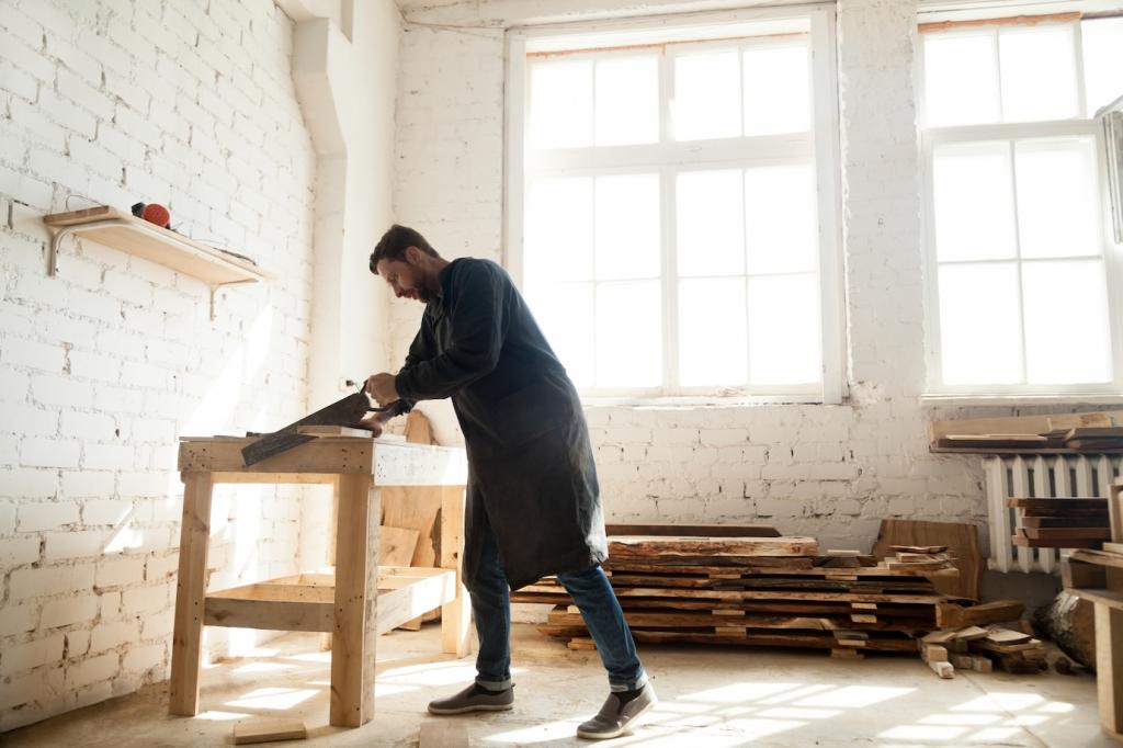 Kleine Kratzer verschwinden mit Walnuss oder Retuschierstift. Dellen lassen sich mit feuchtem Tuch und Bügeleisen vorsichtig ausdämpfen. Wasserflecken hellen Öle auf; punktuelles Nachölen, sanftes Polieren und Geduld bringen Oberfläche, Tiefe und Farbe Schritt für Schritt zurück.